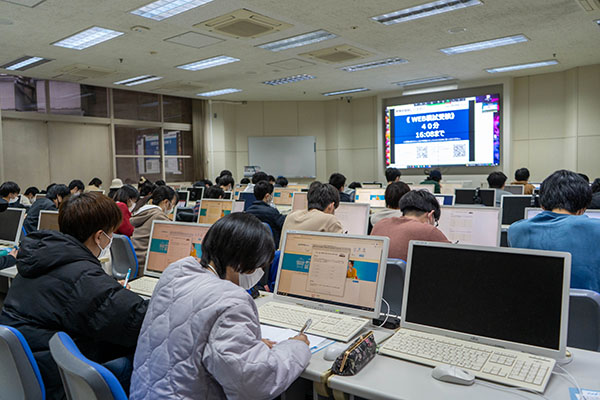 進路ガイダンスでは,SPIのWEB模擬受験を実施した後に,応用情報工学科就職担当の先生より大学院進学と就職についての説明がありました。就職については,教員・公務員や,企業への就職などがありますが,これらを対象とする就職活動の進め方や就職に対する心構え等に関するお話に加え,公務員については公務員担当の先生より試験制度などのお話がありました。