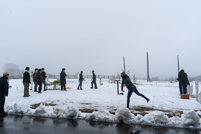 2024年2月6日(火)に,令和5年度第2回応用情報工学科オリエンテーションとして,マザー牧場でジンギスカンを楽しみました。 前日の積雪の影響が心配されましたが,応用情報工学科の学生,情報科学専攻の大学院生,教員を合わせた約100名が参加し,珍しい雪景色のマザー牧場において屋内ジンギスカンを満喫できました。