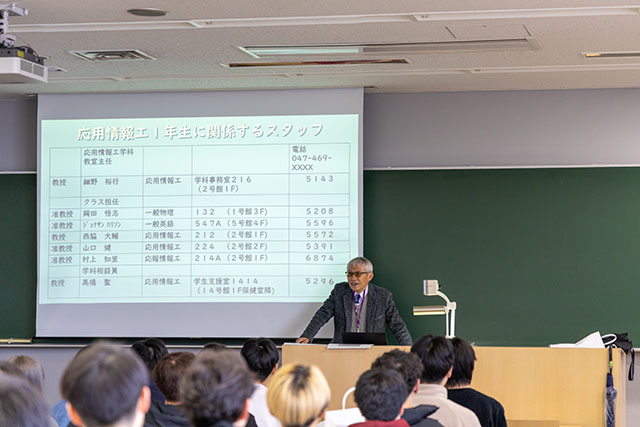 上級生のガイダンスは4月2日(水)に,新入生のガイダンスは4月3日(木)に実施されました。新入生にとって登校初日となったガイダンスでは,事務・履修ガイダンスに加え,日本大学学生用アカウント管理システムであるNU-AppsGや,大学生活において必須の学習管理システム(LMS)であるCST-VOICE,Moodleの説明が行われました。初々しい雰囲気に包まれた教室では,熱心に聞き入りながらも,これからの学生生活への期待感が伝わってくるような明るい様子が印象的でした。情報科学専攻の大学院生へのガイダンスは4月4日(金)に実施されました。今年度の新入生は学部107名,大学院博士前期課程17名,博士後期課程1名です。これからよろしくお願いします。