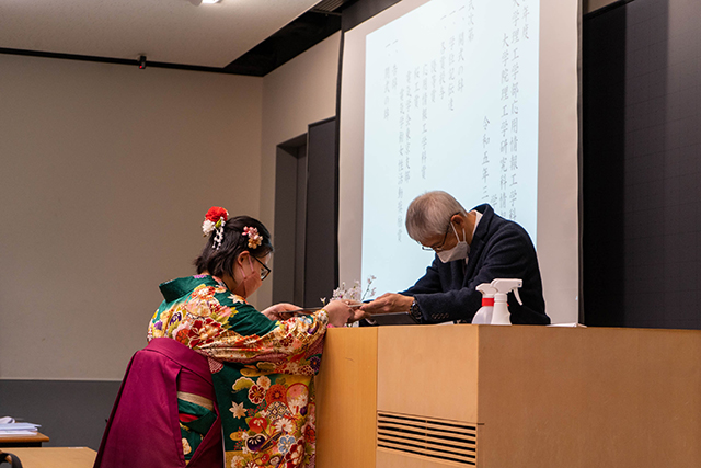 2023年3月25日(土)に,令和4年度日本大学卒業式が日本武道館において挙行され,その後,駿河台校舎1号館にて応用情報工学科及び情報科学専攻の学位記伝達式が執り行われました。